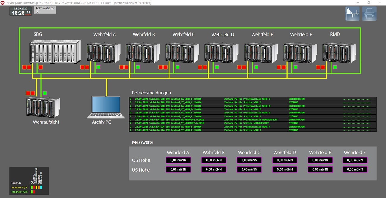 Zur Überwachung des Wehrs wird das OHP Prozessleitsystem ProWin (Version 10) eingesetzt.