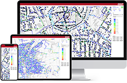 Stellen Sie Ihr Netz geobasiert in der Prozessvisualisierung dar. Die Darstellung der Kartendaten basiert auf einem WMS Server. Den Import der Netzdaten ermöglicht ProWin aus einem GIS-System.