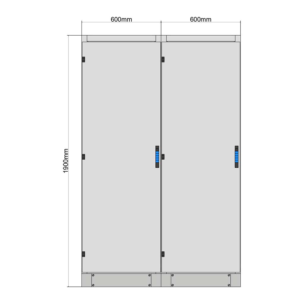 Einbau der Schaltanlage in ein- oder zweitürigen Anreih-Verteilerschränken aus pulverbeschichtetem Stahlblech. Kabeleinführung von oben oder unten.